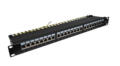 The PP24C6ASH Patch Panel is a high-performance Cat 6A shielded 24-port patch panel designed for reliable termination and management of Cat 6A shielded cables.